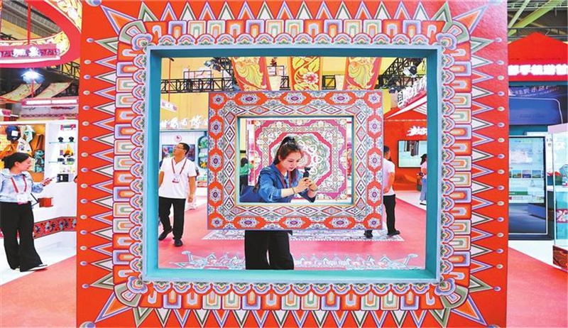參觀者在非遺文創館打卡。