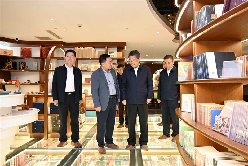 任振鶴先后來到敦煌印局、敦煌無界、敦煌書局和敦煌集·非遺文化街區(qū),詳細(xì)了解文化產(chǎn)業(yè)發(fā)展和非遺文化街區(qū)建設(shè)等情況。他指出,敦煌文化延續(xù)近兩千年,是世界現(xiàn)存規(guī)模最大、延續(xù)時(shí)間最長、內(nèi)容最豐富、保存最完整的藝術(shù)寶庫。要不斷擦亮敦煌文化名片,圍繞建設(shè)世界文化遺產(chǎn)保護(hù)的典范和敦煌學(xué)研究高地,把握傳承和創(chuàng)新的關(guān)系,找準(zhǔn)契合處、聯(lián)結(jié)點(diǎn),加快業(yè)態(tài)融合、產(chǎn)品融合、市場融合、服務(wù)融合,在更高起點(diǎn)、更高層次、更高目標(biāo)上讓敦煌文化“活起來”“潮起來”,為現(xiàn)代化建設(shè)提供有力文化支撐。