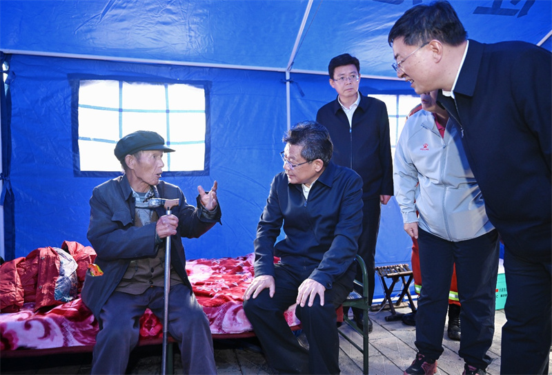 在文峰鎮(zhèn)樺林村,任振鶴深入震中,實(shí)地察看房屋、道路等受損情況,來到安置點(diǎn)看望受災(zāi)群眾,隨后在臨時(shí)指揮部主持召開會(huì)議,與省軍區(qū)、省直相關(guān)部門及定西市、隴西縣、文峰鎮(zhèn)等負(fù)責(zé)同志進(jìn)行會(huì)商研判,安排部署下一步工作。他指出,地震發(fā)生后,各級(jí)各相關(guān)部門聞“震”而動(dòng)、行動(dòng)迅速,第一時(shí)間開展抗震救援、排險(xiǎn)除險(xiǎn)工作,奠定了重要基礎(chǔ)。要堅(jiān)持“省級(jí)指導(dǎo)、市縣統(tǒng)籌、各方支持、群眾參與”,強(qiáng)化統(tǒng)一調(diào)度,落實(shí)責(zé)任、整合資源,以科學(xué)有效的指揮、周密完備的部署,繼續(xù)做好抗震救災(zāi)各項(xiàng)工作。要全面排查風(fēng)險(xiǎn)隱患,加強(qiáng)余震監(jiān)測(cè)預(yù)警,聚焦農(nóng)房、學(xué)校、養(yǎng)老院、衛(wèi)生院、水庫、道路、工礦、橋涵、地質(zhì)災(zāi)害點(diǎn)等可能受地震影響的重點(diǎn)部位,不漏一戶、不落一處,早發(fā)現(xiàn)、早處置,有安全風(fēng)險(xiǎn)的及時(shí)轉(zhuǎn)移,嚴(yán)防發(fā)生次生災(zāi)害。要妥善安置受災(zāi)群眾,按照“五有”要求保障好群眾基本生活,讓受災(zāi)群眾感到踏實(shí)、安穩(wěn)、溫暖。要搶通保暢基礎(chǔ)設(shè)施,緊盯水、電、路、訊,全力做好排查搶修等工作,推動(dòng)盡快恢復(fù)正常生產(chǎn)生活秩序。要迅速開展抗災(zāi)自救,用好各方救援力量,引導(dǎo)動(dòng)員群眾做好農(nóng)房修復(fù)、廢墟清理等工作。要切實(shí)增強(qiáng)抗震意識(shí),進(jìn)一步完善應(yīng)急預(yù)案,加強(qiáng)防震減災(zāi)安全知識(shí)宣傳,不斷提升群眾防災(zāi)減災(zāi)意識(shí),減少災(zāi)害帶來的人身安全、經(jīng)濟(jì)財(cái)產(chǎn)損失。