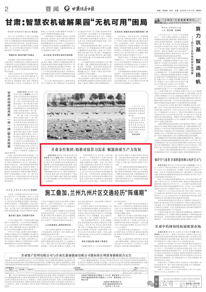 媒體關(guān)注 | 甘肅金控集團:精準(zhǔn)對接算力需求 賦能新質(zhì)生產(chǎn)力發(fā)展